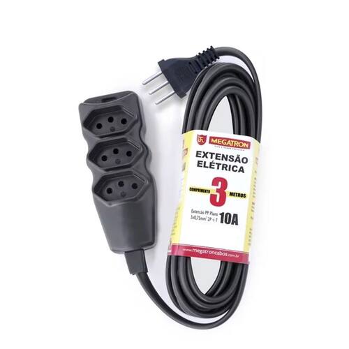 Apresentamos as extensões elétricas 2P+T, produtos de qualidade e que garantem segurança aos usuários, atendendo ao novo padrão brasileiro de plugues e tomadas NBR 14136 . Este produto é produzido com cabo PP, que as torna ainda mais resistentes. Detalhes do Produto Amperagem: 10A Cabo: PP Plano 3x075mm 2P + T Espessura do Cabo: 0,75mm Numero de tomadas: 03 Ideal para: Uso residencial e comercial Ean: 7899278900579