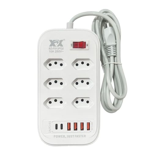 - 6 tomadas: fornecem energia para seus dispositivos - 4 portas USB: permitem carregar seus dispositivos móveis - 2 portas USB-C: suportam carregamento rápido e transferência de dados - 2 metros de comprimento: oferecem flexibilidade e liberdade para posicionar a extensão - Material resistente e durável: garante uma longa vida útil