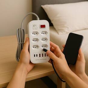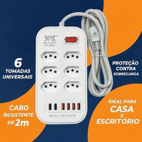- 6 tomadas: fornecem energia para seus dispositivos - 4 portas USB: permitem carregar seus dispositivos móveis - 2 portas USB-C: suportam carregamento rápido e transferência de dados - 2 metros de comprimento: oferecem flexibilidade e liberdade para posicionar a extensão - Material resistente e durável: garante uma longa vida útil