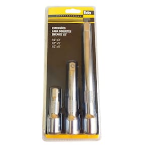 Extensões alongadores para soquetes encaixe 1/2 polegada Descrição do produto - extensões para soquetes encaixe de 1/2'', produto de alta qualidade e durabilidade. - marca: eda - encaixe de 1/2''. - tamanho: 3'', 5'', 8''. - acompanha 3 acessórios para soquetes. - peças extremamente resistentes. - material: aço cromo vanádio. Ideal para alongar soquetes para trabalhos em difícil acesso.