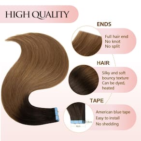 - ?Extensões de cabelo de alta qualidade?Qualidade de salão de beleza, 100% cabelo humano real, naturalmente sedoso e macio, combina perfeitamente com o seu cabelo. nossa fita de extensão de cabelo humano pode ser permanente, tingida, alisada, enrolada à vontade.