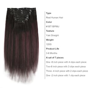 ABH AMAZINGBEAUTY HAIR Grampo de cabelo humano liso yaki em extensões #1BT1BP99J para mulheres negras 120 g - ?Especificações de extensão de cabelo com clipe Yaki?Extensões de cabelo ABH AMAZINGBEAUTY HAIR yaki com clipe reto, cabelo humano remy de alta qualidade, 7 peças por pacote, 17 clipes por conjunto. O peso líquido sem o clipe é de 95 gramas e o peso líquido com o clipe é de cerca de 120 gramas. Para cabelos grossos, você pode precisar de 1-2 pacotes para adicionar comprimento, e para cabelos finos, você pode precisar de 2-3 pacotes para adicionar volume. Nossa loja tem uma ampla ampla variedade de produtos, oferecendo uma variedade de comprimentos, cores e estilos para escolher. - ?Mais fácil de usar?As extensões de cabelo yaki com clipe reto no cabelo humano real podem ser colocadas e removidas livremente e rapidamente, para que você possa ter cabelos mais longos e cheios em apenas alguns minutos. Não requer lavagem frequente, é tão macio quanto o cabelo natural, não causa nenhum dano ao seu cabelo natural e pode ser removido sem danificar seu próprio cabelo. - ?Resistente e confortável?As extensões de cabelo liso ABH AMAZINGBEAUTY HAIR yaki têm clipes de alta qualidade, resistentes e não enferrujam, mais confortáveis de usar, adicionam volume, comprimento ou destaques ao seu cabelo natural, ajudam você a mudar penteados para diferentes ocasiões, como casamentos, festas, encontros, necessidades de fotografia, cosplay e muito mais. - ?Dicas de cuidado?Os clipes retos Yaki podem ser tingidos de escuro, mas não podem ser descoloridos. Como as extensões de cabelo não obtêm nutrição do couro cabeludo, lave o cabelo com um xampu e condicionador hidratante, aplique o condicionador e deixe o cabelo secar ao ar. Ao pentear, certifique-se de que a temperatura esteja abaixo de 390 graus F. Com os devidos cuidados, as extensões de cabelo humano yaki podem durar de 3 a 5 meses ou mais. - ?Dicas quentes?Os clipes de extensão de cabelo de 30 a 50 cm têm o mesmo peso, 120 gramas, então quanto maior o comprimento, mais fina a espessura. Devido à resolução da tela e iluminação, as cores que você vê podem diferir ligeiramente das cores que você vê na imagem. Se você encontrar algum problema durante o processo de compra, na primeira vez, sua satisfação é nossa maior prioridade, estamos comprometidos em encontrar uma solução melhor.