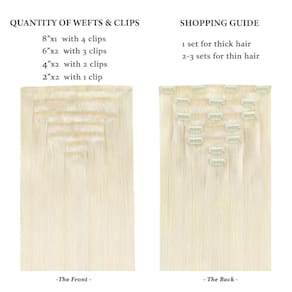 - Textura grossa e acetinada e amigável para iniciantes. -- Cada conjunto de extensões de cabelo sem costura contém 7 peças com 16 clipes. 35,5 cm a 45,7 cm pesam 130 g/conjunto e 50,8 cm a 56 cm pesam 150 g/conjunto. Adicionamos gramas ao cabelo em tamanho maior para garantir que ele esteja cheio de cima a ponta. Você pode sentir a textura incrivelmente grossa ao segurá-lo. Até mesmo um iniciante pode dominar a aplicação em casa na primeira tentativa, só precisa separar o cabelo e depois prender as extensões de cabelo.