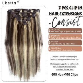 - ?Material de extensões de cabelo com clipe?-- As extensões de cabelo Ubetta são grampos de cabelo humano real em extensões coletadas de meninas, saltitantes, macias, limpas e lisas, sem cortar como suas próprias pontas de cabelo naturais, podem ser remodeladas, lavadas, reforçadas, enroladas, tingidas, permanentes etc. Se você quiser enrolar ou alisar sozinho, controle a temperatura abaixo de 180 °C.