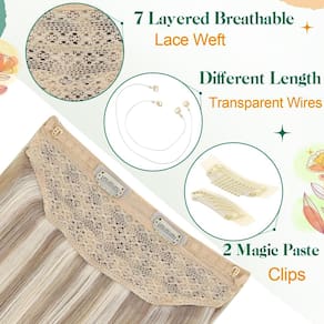 Extensor de cabelo Easyouth Secret Wire A extensão de cabelo fácil de encaixar e remover sem cola, sem tecelagem, sem clipes e sem fitas. O cabelo é apenas preso a um fio pouco visível, que é fácil de esconder com o seu próprio cabelo. Você vai adorar depois de experimentar. Detalhes do cabelo: Material: Cabelo humano real Comprimento: 30,5 a 50,8 cm Textura: Reto. Observe que o cabelo fica um pouco ondulado após a lavagem ou embalagem inadequada, isso é normal. Largura da trama: 28 cm Peso: 30.5 cm-35.6 cm é 70g/pacote, 40.6 cm-45.7 cm é 70g/pacote, 50.8 cm é 100g/pacote Como aplicar: 1. Coloque a extensão do cabelo com o fio atrás da linha. Empurre suavemente para baixo para caber sobre as orelhas e sentar na base do crânio. 2. Puxe a lateral do seu cabelo para fora na frente da faixa de cabelo para se misturar com o seu cabelo natural. 3. Finalizando o visual, solte todo o cabelo para esconder o fio e misture com a extensão do cabelo. 4. Desfrute de cabelos bonitos, longos e cheios em apenas alguns minutos. Como cuidar: 1. Lavar e condicionar o cabelo regularmente. 2. Penteie o cabelo suavemente antes de lavar. Não esfregue ou torça o cabelo. 3. Adicione xampu suave à água fria e lave o cabelo até limpar. 4. Limpe o excesso de água com uma toalha e deixe o cabelo secar naturalmente. Não exponha ao sol. 5. Penteie o cabelo encaracolado suavemente com os dedos. Não escovar. 6. Esmague o cabelo liso em um movimento descendente reto com as pontas. Trabalhe até as raízes. 7. O cabelo pode ficar emaranhado se as instruções de cuidados gerais não forem seguidas corretamente. Life Is Fantastic and Easyouth makes it unique! - Cabelo real, naturalmente suave - as extensões de cabelo Easyouth são feitas de cabelo humano real, oferecendo uma aparência natural e textura suave. Nossa versão atualizada não embaraça, fácil de pentear, mais suave e mais natural de usar - Leve e respirável - Nossas extensões de arame usam design respirável e materiais macios, e a linha de peixe é invisível. Adequado para qualquer ocasião, como trabalho, festa ou escola, mantendo você confiante e à vontade de manhã à noite - Facilidade de aplicação - Fácil de usar em casa em apenas alguns minutos, nossas extensões de arame vêm com 6 ganchos ajustáveis e 2 clipes removíveis para ajustar ao tamanho da sua cabeça e manter firmemente no lugar. Adequado para diferentes tamanhos de cabeça. Não é necessário visitar o salão - Vários comprimentos e pesos - Nossas extensões de arame vêm em comprimentos de 30,5 cm a 50,8 cm, com pesos que variam de 70 g a 100 g, e temos muitas cores (preto, marrom, loiro, balayage, destaque) garantindo que você encontre a combinação adequada para suas necessidades - Colora e estiliza suas extensões de cabelo humano com corante, cachos ou alisamento, mas mantenha a temperatura abaixo de 180 °C. Observação: as extensões de cabelo só podem ser tingidas em tons mais escuros