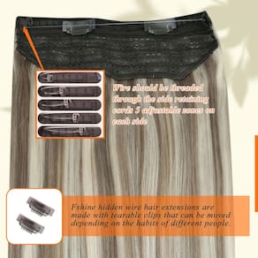 Extensões de cabelo de linha de pesca, é um novo método de extensão de cabelo. E onde a maioria das extensões de cabelo proporciona cabelos mais longos e espessos, prendendo-os ao seu próprio cabelo com um fio milagroso transparente e dois clipes removíveis, o que é indetectável se esconder sob o seu próprio cabelo. A extensão de cabelo atualizada não requer qualquer fixação física ao seu cabelo. Sem fita, sem cola, definitivamente sem danos ao seu próprio cabelo. Detalhes do produto: Material do cabelo: cabelo humano real Textura do cabelo: naturalmente liso, pode ser enrolado (mantenha a temperatura abaixo de 160 °C e evite aplicar calor ao fio de peixe, pois ele pode derreter) Comprimento do cabelo: 25 a 20 polegadas estão disponíveis Peso do cabelo: 25.4 cm 50 gramas; 30.5 cm-35.6 cm 70 gramas; 40.6 cm-50.8 cm 80 gramas Número de clipe: 2 clipes removíveis com pasta mágica Número de fios: 2 fios, o comprimento é de 20 cm e 25 cm Por que escolher as extensões de cabelo Fshine Fish Wire Fio invisível Menos pressão no seu cabelo, não danificará o couro cabeludo, beleza confortável e saudável. Linha de peixe substituível e clipes mantêm o produto mais estável durante o uso e proteção dupla. Processo de trama de camadas atualizadas Novo processo de tricô de trama em camadas, tornando o cabelo mais forte e difícil de cair. Quem pode usar esta peruca Para aqueles com cabelo maior que o comprimento dos ombros e um tipo de cabelo fino a médio. Para aqueles com um tipo de cabelo mais grosso, recomendamos optar por um conjunto de 3 peças com este fio de peixe no cabelo. Como escolher o tamanho do seu fio A peça de cabelo deve ficar confortável na parte superior da sua cabeça. Ele deve tocar suavemente sua cabeça e não deve se mover quando você balança a cabeça. Você pode facilmente obter o tamanho certo ajustando a posição de fixação do anzol. Como evitar emaranhamento de cabelo Lave o cabelo de 1 a 50 vezes por semana, use um pente de dentes largos no cabelo suavemente de baixo para cima, condicionador sem sulfúrico é necessário para manter o uso por mais tempo. - Cabelo humano real: as extensões de cabelo Fshine são feitas inteiramente de cabelo humano real, dando um acabamento naturalmente brilhante e suave de suas próprias madeixas; se você deseja adicionar comprimento, volume, ele foi projetado para melhorar seu estilo sem esforço - Atualização do produto: as extensões de cabelo de arame de peixe Fshine adotam renda respirável feita à mão, e seis tamanhos de linhas de pesca de substituição podem facilmente ajustar o comprimento da cortina para atender às necessidades de circunferência da cabeça da maioria das pessoas - Fácil instalação: atualize seu jogo de cabelo em segundos com as extensões de cabelo Fshine Wire; diga adeus às instalações complicadas, nossas extensões de fio de peixe podem ser colocadas em menos de 1 minuto sem a necessidade de cola ou fita adesiva - Várias opções de cores: do preto ao loiro platinado, de destaques a balayage, oferecemos uma ampla variedade de cores e estilos; compartilhe suas fotos de cabelo conosco e forneceremos um serviço de correspondência de cores - Adequado para qualquer ocasião: se você estiver se vestindo para um encontro noturno, procurando impressionar no escritório, celebrar em um casamento ou curtir um evento festivo, nossas extensões de linha de pesca melhorarão seu estilo geral - Mistura natural: combine diferentes cores e comprimentos para criar seu visual em camadas, projetado para se misturar perfeitamente com seu cabelo natural, as extensões de fio Fshine Remy dão a você uma aparência polida que ainda é fácil de gerenciar - Opções de estilo flexíveis: a incrível versatilidade das extensões de cabelo de arame permite que você use seu cabelo em uma variedade de estilos, se você prefere ondas despenteadas, estilos lisos elegantes ou rabo de cavalo vibrante, as extensões de arame atenderão às suas necessidades de estilo - Camadas criativas: a versatilidade das extensões de cabelo de arame permite que você expresse seu estilo pessoal e crie penteados exclusivos que se destacam; misture e combine diferentes cores e comprimentos para um visual criativo em camadas - Dicas: as extensões de cabelo de arame podem ser estilizadas à vontade, mas tenha cuidado para evitar aquecimento excessivo (não mais de 200 °C); ao tingir o cabelo, tingir apenas cores escuras e evitar branqueamento em cores claras