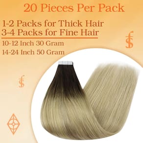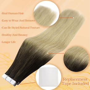 Extensões de cabelo Ombre Balayage Tape in Hair é o símbolo da Full Shine Hair. Se você está cansado da cor pura básica, escolha a cor Ombre Balayage é uma escolha correta, experimente! Detalhes do produto: Material do cabelo: cabelo humano real Textura: Liso e tem uma onda natural quando molhado ou deixado para secar ao ar livre ou difuso. Fita: Fita branca americana Tamanho da fita: 0,8 cm x 4 cm Conjunto: 2,5 g/peça, 20 peças/pacote, 50 g/pacote Aviso antes de fazer o pedido 1. Quantidade necessária: 150-250 gramas, 3-5 pacotes são recomendados para toda a cabeça. Se você tiver cabelo curto, reduza 1 pacote. 2. Sobre o estilo: nossas extensões de cabelo com fita humana são exatamente como o seu próprio cabelo e podem ser modeladas, enroladas ou alisadas conforme desejado. O DIY diário reduzirá a vida útil das fitas, use mais nutrição. 3. Sobre a cor: nossa fita de cabelo pode ser mais escura, mas não mais clara. Sempre teste um pequeno pedaço quando você tingir. 4. Sobre a lavagem: lave seu próprio cabelo sem condicionador quando for a primeira vez para aplicar em . Não lave o cabelo pelo menos 72 horas após a fixação, a lavagem diária não é boa para suas extensões. Use xampu e condicionador sem sulfato no cabelo 5. Cuidados: sugerimos que você use o óleo para reviver o cabelo seco; dormir com uma touca de seda ou compre uma fronha de seda para proteger o cabelo. 6. Sobre o uso: O cabelo pode ser reaproveitado com fita de substituição. Sugerimos ajustar a fita a cada 2-5 semanas para manter o cabelo bem. Encontre beleza e confiança com Full Shine Hair. - Sobre a instalação: o sanduíche é uma boa maneira, as duas peças devem ser alinhadas, não adicione muito cabelo no meio, ou ele cairá; você pode cortar suavemente as fitas uma vez com um alisador de cabelo, não aqueça a fita usando temperaturas excessivamente altas - Aparência natural: extensões de cabelo com fita adesiva podem adicionar estilo e volume ao seu cabelo com resultados naturais e discretos; ao escolher a cor que se adapta ao seu tom de cabelo, você pode desfrutar de cabelos mais cheios sem que ninguém perceba que você está usando extensões de cabelo - Disponível em vários tons: extensões de cabelo humano com fita adesiva oferecem muitos tons diferentes, balayage e ombré e muitas cores puras; você também pode criar sua mistura preferida usando dois ou três tons diferentes para obter um visual natural - Dupla face, invisível e substituível: como eles são muito leves e pegajosos o suficiente, eles se unem bem ao seu cabelo real sem qualquer desconforto. O uso adequado não danificará seu couro cabeludo e não causará nenhum desconforto. Você pode usar um removedor de adesivo ao remover - Como desembaraçar: nunca durma com extensões de cabelo molhado; sempre certifique-se de que o cabelo esteja seco e puxado para cima; use um pente de dentes largos nas pontas do cabelo, alise o cabelo, aplique azeite de oliva. Também pode ser utilizado com spray desembaraçante - Mais opções de penteado: se você quiser experimentar um novo visual, as extensões de cabelo com fita Full Shine podem ajudá-lo a alcançar seus objetivos de cabelo desejados; já que são cabelos humanos reais, que podem ser lavados, fortalecidos e enrolados usando um alisador - Uso recomendado: para cabelos grossos, 1-2 pacotes para aumentar o peso e 3-4 pacotes para aumentar o comprimento; para cabelos finos, 3-4 pacotes para aumentar o peso e 1-2 pacotes para aumentar o comprimento; você só precisará visitar o salão a cada 3 a 6 semanas após as extensões estarem em - Menos manutenção e antes da instalação: ao contrário de outros métodos, as extensões de cabelo com fita adesiva exigem menos manutenção; lave sua fita em extensões e seque com secador, não use condicionador ou óleo antes da instalação; é melhor você ir a um salão para instalar - Após a instalação: não lave a fita adesiva no cabelo em 48 horas, sugerimos que você use um condicionador melhor para cuidados profundos; nunca coloque o condicionador nas raízes do seu cabelo de qualquer maneira; isso pode fazer com que suas extensões de cabelo escorreguem