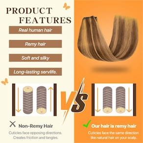 - Estilo sem esforço: extensões de cabelo invisíveis são perfeitas para iniciantes, permitindo a aplicação em menos de um minuto sem a necessidade de cola ou fita. A extensão de cabelo Halo economiza tempo e dinheiro eliminando a necessidade de visitar um salão, permitindo que você estilize facilmente seu cabelo em casa e tornando a beleza não mais um luxo.