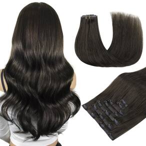 2. Extensões de cabelo com clipes: conjunto de 7 peças de 120 g. Peso líquido de 105 g para cabelo sem clipes, 120 g para cabelo com clipes.