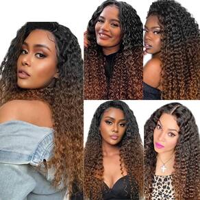 - ?Tipo e cor do pacote de cabelo? Cabelo humano ondulado profundo. Pacotes 1B430, pacotes ombré marrom e marrom claro.