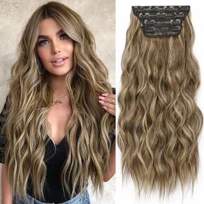 KooKaStyle Extensões de cabelo castanho claro mix loiro 626D clipe em extensões de cabelo sintético ondulado longo 4 peças postiços grossos 50 centímetros para mulheres - ?Mais volume? -- Com 190 g 50,8 cm, cada pacote inclui: 2 peças de 12,7 cm de largura, 2 clipes em trama; 1 peça de 15 cm de largura 3 clipes em trama; 1 peça de 18 cm de largura e 4 clipes em trama. - ?Efeito após o uso?--Pode fazer seu cabelo parecer muito real como o seu próprio cabelo. E esta extensão de cabelo pode fazer seu cabelo parecer mais longo, mais grosso, o que é muito fácil de usar. Você pode aparar e remodelar seu estilo de cabelo de acordo com o comprimento do seu próprio cabelo. - ?Mais confortável e saudável?-- Trama dupla é usada em vez de trama única. Ao usar produtos de extensão de cabelo, haverá uma ligeira perda de cabelo, o que é normal. Os clipes de aço inoxidável antiderrapantes são bem costurados em cada trama com firmeza, fáceis de usar e tirar como quiser, nunca machucam seu couro cabeludo. - Aberração cromática: todos os produtos desta loja são fotos reais; pode haver pequenos desvios devido à tecnologia, exibição, luz, ambiente, etc., consulte o produto real. - Como cuidar: ao contrário do seu próprio cabelo, as extensões de cabelo podem ficar emaranhadas sem nutrientes. Use um spray desembaraçante ou pegue um frasco de spray, coloque um pouco de condicionador e adicione água. Se não houver condicionador, basta borrifar um pouco de água, para que a extensão do cabelo não fique muito seca e evite emaranhados até certo ponto.