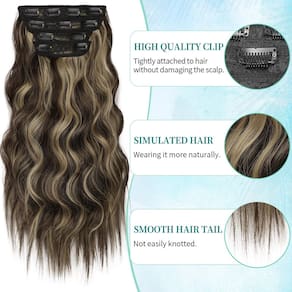 KooKaStyle Extensões de cabelo sintético com presilhas longas onduladas 4 peças de cabelo grosso marrom mistura loiro arenoso F6/18 extensões de cabelo natural trama dupla 50 cm para mulheres - ?Mais volume? -- Com 190 g 50,8 cm, cada pacote inclui: 2 peças de 12,7 cm de largura, 2 clipes em trama; 1 peça de 15 cm de largura 3 clipes em trama; 1 peça de 18 cm de largura e 4 clipes em trama. - ?Efeito após o uso?--Pode fazer seu cabelo parecer muito real como o seu próprio cabelo. E esta extensão de cabelo pode fazer seu cabelo parecer mais longo, mais grosso, o que é muito fácil de usar. Você pode aparar e remodelar seu estilo de cabelo de acordo com o comprimento do seu próprio cabelo. - ?Mais confortável e saudável?-- Trama dupla é usada em vez de trama única. Ao usar produtos de extensão de cabelo, haverá uma ligeira perda de cabelo, o que é normal. Os clipes de aço inoxidável antiderrapantes são bem costurados em cada trama com firmeza, fáceis de usar e tirar como quiser, nunca machucam seu couro cabeludo. - Aberração cromática: todos os produtos desta loja são fotos reais; pode haver pequenos desvios devido à tecnologia, exibição, luz, ambiente, etc., consulte o produto real. - Como cuidar: ao contrário do seu próprio cabelo, as extensões de cabelo podem ficar emaranhadas sem nutrientes. Use um spray desembaraçante ou pegue um frasco de spray, coloque um pouco de condicionador e adicione água. Se não houver condicionador, basta borrifar um pouco de água, para que a extensão do cabelo não fique muito seca e evite emaranhados até certo ponto.