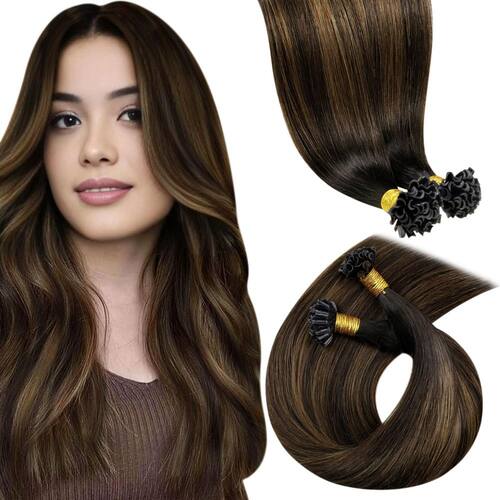 As extensões de cabelo com ponta em U da LaaVoo são feitas com cabelo humano Remy, dando a você a escolha mais adequada. Os termos extensão de cabelo ponta U/ponta de unha são frequentemente utilizados para descrever a mesma coisa, o que é simplesmente uma maneira de descrever a forma da queratina no final de cada fio. A queratina é moldada em forma de "u" ou "unhas" para tornar rápido e fácil derreter contra o cabelo para formar uma ligação selada. Sem danos ao seu próprio cabelo! Especificações: Marca: LaaVoo Tipo de extensão: Extensões de cabelo com ponta em U Material: Cabelo humano Remy Quantidade: 1 g/fio, 50 g/pacote Como aplicar 1. Primeira seção de cabelo (sempre corte o cabelo de baixo para cima) 2. Insira o separador na raiz para proteger seu couro cabeludo do calor 3. Puxe o cabelo através do orifício do separador torcendo vários pelos e depois puxando-os 4. Coloque a extensão de ponta em U pré-colada sob o seu próprio cabelo 5. Coloque a varinha de fusão sob o cabelo 6. Feche a varinha de fusão por alguns segundos, derretendo e espalhando a cola ao redor de cada cabelo. 7. Assim que a cola derreter, enrole a cola entre os dedos até que a cola fique cilíndrica segurando a extensão no lugar. AME NOSSO CABELO, APROVEITE SUA VIDA! - Cabelo real; liso e saudável: as extensões de cabelo com ponta em U da LaaVoo são feitas de cabelo humano puro e real que combina com o seu próprio cabelo. Eles são resistentes ao calor e duráveis, mais suaves e brilhantes, dando a você um cabelo bonito e saudável - Material de queratina italiana seguro: as extensões de cabelo humano LaaVoo Ktip são feitas de queratina italiana, inofensivas para o cabelo e couro cabeludo. Método exclusivo de fixação da ponta em forma de U que facilita a fixação e remoção - Especificações: As extensões de cabelo humano real da LaaVoo K Tip contêm vários designs de comprimento, variando de 35,5 a 61 cm, e cada pacote pesa 50 gramas. 2 pacotes para adicionar destaque, 3-4 pacotes de extensões para adicionar espessura - Vantagens do método de uso: Instalação de 3,8 a 5 cm de distância do couro cabeludo. O método de fixação Utip garante uma mistura perfeita entre o cabelo natural e as extensões de cabelo, criando uma aparência natural e indetectável - Cor da moda: As extensões de cabelo humano com ponta em U da LaaVoo incluem várias opções de cor de cabelo. Você pode misturar e combinar cores à vontade para criar suas próprias extensões de cabelo exclusivas