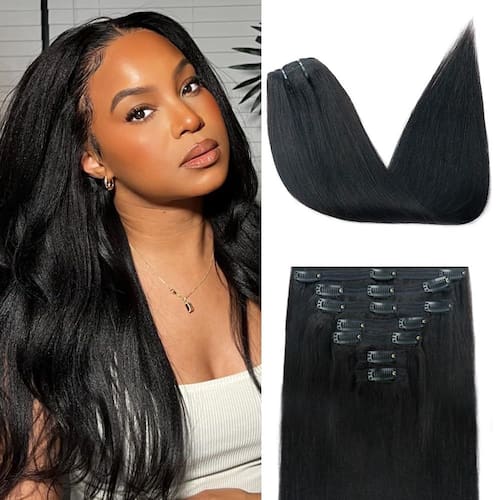 -?Alta qualidade?Extensões de cabelo com clipe reto Pobokix yaki 100% extensões de cabelo humano virgem não processadas, combinam perfeitamente sem trancinhas, são sedosas e lisas, podem ser fortalecidas, enroladas e tingidas, como seu próprio cabelo!