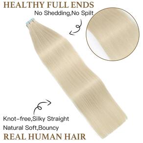 20 peças de fita de 50 gramas na extensão de cabelo loiro platinado de 50 cm - Extensão de cabelo natural e sem costura: as fitas são o método de extensão de cabelo mais solicitado no mundo. Nossas fitas Remy são projetadas para todos os tipos de cabelo para adicionar volume e comprimento instantâneos e naturais. Eles são discretos e confortáveis devido ao seu design de fita ultrafina. - Cabelo humano 100% real: macio, saltitante e sedoso liso, pode ser alisado ou enrolado conforme necessário. Com os devidos cuidados, o cabelo remy pode permanecer brilhante, sedoso e sem emaranhados durante toda a sua vida útil. - Invisível e de longa duração: as extensões de cabelo Sunfly são fitas dupla face com cola forte, sem queda de cabelo, potente e hipoalergênico. Leve, confortável, pode durar de quatro a seis semanas (12 fitas de substituição estão incluídas) - Ótimo para volume: fita de 3,8 cm de largura. 20 peças, 50 g por pacote (35,6 cm-40g). Recomendamos 1-2 pacotes para cabelos finos, 3-4 pacotes para cabelos finos, 5 pacotes a mais se você gosta de volume pesado. Geralmente 3-4 pacotes podem obter uma boa espessura. Recomenda-se encontrar um profissional para instalá-lo ou leia nosso guia de instalação cuidadosamente antes da instalação. - Resolução rápida de problemas: todas as fotos são tiradas sob luz natural. Devido à diferença na resolução da tela ou equipamento, pode haver uma pequena diferença de cor. Quando você encontrar algum problema com nossas extensões de cabelo, informe-nos e nós o ajudaremos rapidamente a resolver o problema!