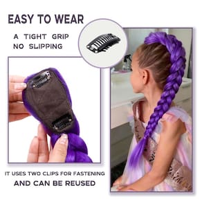 Esta trança única roxa é instalada com clipes simples, sem exigir habilidades de trança. É confortável de usar e não puxa. A cor é vibrante e tem um brilho brilhante.