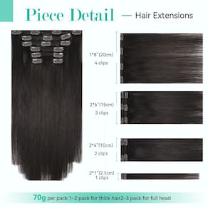 As matérias-primas de extensões de cabelo Extensões de cabelo Ukira com clipe de cabelo humano real, extensões de cabelo humano 100% Remy, o cabelo Remy é recolhido da cabeça dos doadores de forma a manter as cutículas do cabelo adequadamente alinhadas em relação aos cabelos vizinhos. Isso significa que o cabelo permanece mais macio, sedoso e mais saudável do que o cabelo humano comum. Quando lavado, não fica emaranhado e emaranhado. Por que escolher o cabelo Ukira Nossas extensões de cabelo se misturam naturalmente com o seu próprio cabelo e podem ser lavadas, secadas, chapadas e/ou enroladas usando ferramentas quentes, assim como seu próprio cabelo, sem queda, sem emaranhados, sem cheiro, macio e sedoso. A combinação de 7 peças é flexível para usar à sua escolha. Os clipes já estão presos e o conjunto está pronto para uso instantâneo em apenas 5 minutos sem o incômodo de colas, fitas ou tecidos. Detalhes do cabelo Comprimentos do cabelo: 30,5 - 56 cm Peso do cabelo: 70 g Estilo do cabelo: Liso sedoso Vida útil do cabelo: 6-12 meses (dependendo do cuidado e uso) Observação: -- O cabelo humano é macio por natureza. A vida útil depende muito de como eles foram utilizados e cuidados. Xampus/condicionadores inadequados, frequentemente usando ferramentas de aquecimento, tingimento, modelagem pesada podem encurtar a vida útil. -- Todas as fotos são tiradas pela UkiraHair, portanto, observe a diferença de cor devido a diferentes luzes e monitores. - Extensões de cabelo humano real com clipe de alta qualidade -- Extensões de cabelo humano 100% Remy. Tão suave e macio quanto o seu próprio cabelo, sem emaranhamento e sem queda. As extensões de cabelo com clipe podem adicionar volume e comprimento ou destaques ao seu próprio cabelo, misturando-se perfeitamente com o seu próprio cabelo. Nossas extensões de cabelo podem ser lavadas, cortadas, tingidas, alisadas e enroladas ao seu gosto. - Especificações de extensões de cabelo humano real - extensões de cabelo castanho escuro clipe em cabelo humano real, 7 peças 100 g com 16 clipes por conjunto, 50 cm, #2 marrom escuro. De acordo com o seu próprio volume de cabelo, apenas para engrossar o seu cabelo, aconselhamos comprar 1-2 conjuntos; quer cabeça cheia, conselho comprar 2-3 conjuntos. Quando o peso for o mesmo, o tamanho maior será mais fino do que o tamanho menor. - Extensões de cabelo com clipe que combinam com a cor do cabelo humano real – Nossas extensões de cabelo humano com clipe incluem uma variedade de cores sólidas, destaque, ombre e efeitos balayage. Oferece várias opções para criar diferentes penteados. Devido a diferentes equipamentos de iluminação e exibição, pode haver pequenas diferenças de cor entre as imagens do produto e o cabelo real. Podemos fornecer serviços de correspondência de cores antes de fazer seu pedido. - Confortável e fácil de usar – Extensões de cabelo sem costura, o cabelo humano real tem 16 cartões de metal em forma de U costurados. A cor dos clipes é próxima à cor do cabelo, muito ocultável. Os clipes são costurados de forma estável e cobertos com uma camada de borracha macia para reduzir efetivamente o puxão do cabelo. Você pode facilmente colocar ou tirar suas extensões de cabelo em 5 minutos. Se os clipes forem danificados durante o transporte ou uso, fornecemos substituição vitalícia. - Extensões de cabelo humano Dicas de encaixe -- Cuide adequadamente das extensões de cabelo para manter a suavidade e o brilho. Use xampu e condicionador neutros. Ao tingir, recomenda-se tingir cores mais escuras, e não é recomendado tingir cores claras. Controle a temperatura abaixo de 180 °C ao reestilizar. As extensões de cabelo podem durar aproximadamente 3-4 meses com bom cuidado.