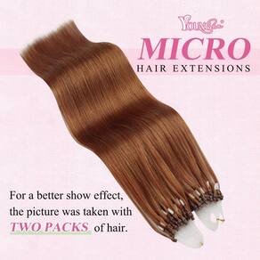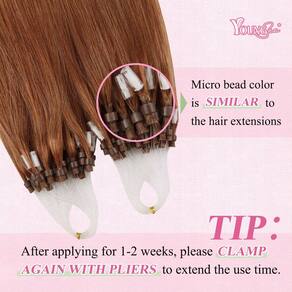 YoungSee Extensões de cabelo micro anel (micro contas ou microlaço) são adequadas para adicionar espessura e comprimento ao seu cabelo. Não requer cola, calor, colagem de queratina ou costura, não há nenhum dano causado ao seu cabelo. Vantagens das extensões de micro anel YoungSee Saudável: aplicado profissionalmente com microanéis, o que é inofensivo para o seu cabelo Indetectável: anexado com microanéis, que é muito pequeno Tipo de extensão: Extensões de cabelo humano micro anel/laço Tipo de cabelo: cabelo humano real natural remy Textura: reta, um pouco ondulada devido à embalagem, pode ser alisada e enrolada Comprimento do cabelo: 35,5 a 61 cm Cor do cabelo: há uma pequena diferença de cor com diferentes monitores, obrigado pela sua compreensão Peso do cabelo: 50 gramas por pacote, 1-2 pacotes para adicionar volume, 2-3 pacotes para esticar o comprimento Vida útil: 2-3 meses, dependendo do cuidado e uso Cuidados com o cabelo Lave o cabelo com condicionador suave e xampu em água morna, 2-3 vezes para cada semana Enxágue suavemente e escove o cabelo com movimento descendente, olhando para a parte inferior, depois movendo-se gradualmente para cima até que tudo esteja escovado. Não durma com cabelo molhado, trançar o cabelo ou rabo de cavalo ao dormir para evitar emaranhamento Não coloque o cabelo no mar ou álcool - Especificação: As micro extensões de cabelo YoungSee são de 35 a 61 cm, 50 gramas/50 fios/pacote. 1-2 pacotes para adicionar volume de cabelo, 3-4 pacotes para uma cabeça inteira. Todas as fotos foram tiradas usando dois pacotes de cabelo, a espessura do produto varia de acordo com o ângulo e é apenas para referência - Cabelo humano real: As extensões de cabelo YoungSee Micro Beads são cabelo humano real. Melhoramos nossas micro extensões de cabelo com tecnologia de cabelo Remy, emaranhado avermelhado, para um uso mais suave e duradouro - Fácil de aplicar: O método de instalação de extensões de cabelo humano real YoungSee Micro Bead é fusão a frio. Sem calor ou cola, reduz os danos ao cabelo e couro cabeludo - Anel de silicone: As extensões de cabelo humano YoungSee Micro Link usam anéis de silicone, que podem reduzir a perda de cabelo e prolongar a vida útil do cabelo. A cor do anel de silicone muda de acordo com a tonalidade da raiz do cabelo, criando uma aparência natural - Longa duração: com manutenção regular, incluindo o reachatamento das contas a cada 1-2 semanas, as extensões de cabelo humano microlink podem ficar lindas por mais tempo