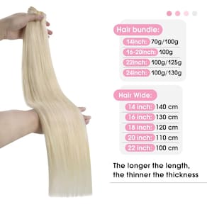 - Mais opções de volume: para atender a diferentes necessidades, nossas extensões de cabelo costuradas aumentaram o peso de nossas extensões de 56 cm para 125 g e extensões de 61 cm para 130 g, oferecendo mais volume e espessura