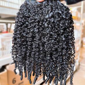 b) Estilo de cabelo: extensões de cabelo clássicas encaracoladas em espiral birmanesa