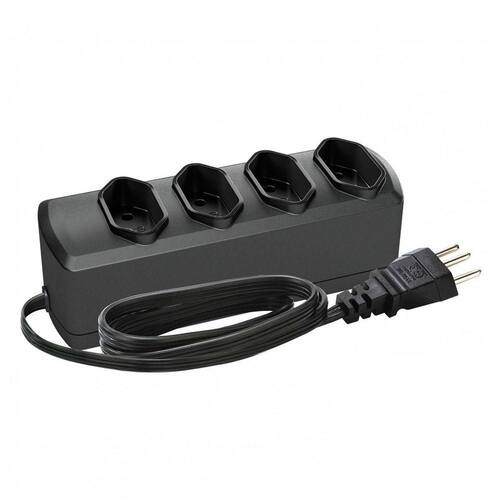 Extension Cord Extensão elétrica com 4 tomadas de saída no padrão brasileiro NBR 14136, facilitando as conexões dos equipamentos.