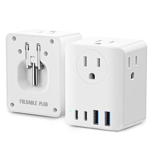 ?Plugue dobrável?Design de plugue dobrável, o plugue pode ser ligado em 2 pinos e 3 pinos. Tamanho compacto (2,89* 2,35* 1,79 polegadas), pode caber facilmente em uma mala ou bolsa, e o pino não será dobrado, portátil para viagens