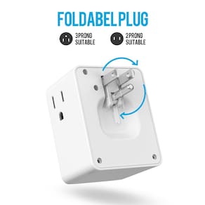?Plugue dobrável?Design de plugue dobrável, o plugue pode ser ligado em 2 pinos e 3 pinos. Tamanho compacto (2,89* 2,35* 1,79 polegadas), pode caber facilmente em uma mala ou bolsa, e o pino não será dobrado, portátil para viagens
