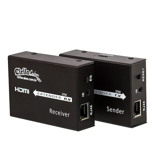 - transmissor e compacto - a conexão do transmissor e do é feito através de um único cabo de rede com 30 metros. - não precisa de software para instalação - funciona com cabos categoria 5e e 6 de qualquer marca, desde que seja homologado e padrão 568a - suporta hd digital e alta resolução hdtv 480p/720i/720p/1080i/1080p