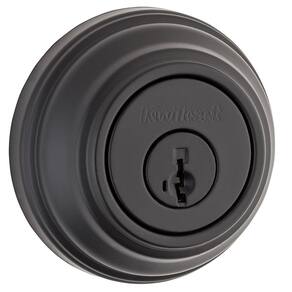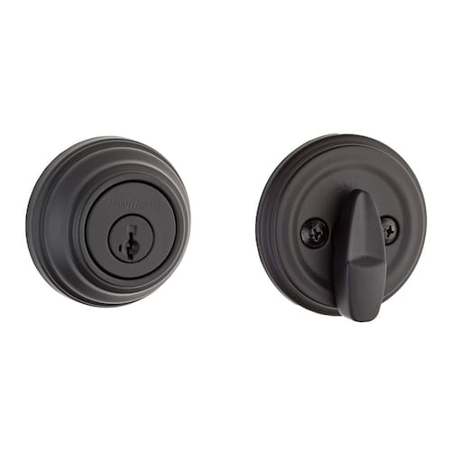 Kwikset Fechadura de fechadura 980, porta de entrada frontal com chave externa redonda preta fosca, segurança SmartKey Rekey resistente a palhetas, parafuso morto de cilindro único, com proteção