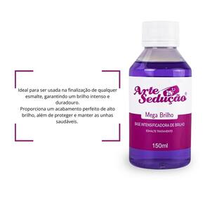 Contém: 01 - Esmalte de Tratamento Extra Brilho, 150ml, Arte Sedução; 01 - Base Intensificadora de Brilho Mega Brilho, 150ml, Arte Sedução; 01 - Óleo Secante de Esmaltes, 150ml, Arte Sedução. O Kit Brilho Máximo é ideal para quem busca unhas impecáveis, com acabamento e luminosidade intensa. Ele reúne a base Mega Brilho, que intensifica a cor e proporciona efeito espelhado; o Óleo Secante, que acelera a secagem e protege contra borrões; e a base Extra Brilho, que realça o esmalte e prolonga sua durabilidade com um acabamento sofisticado. Ideal para uso doméstico ou no salão, esse conjunto garante unhas mais bonitas, protegidas e com um efeito radiante. Além de resultados de alta performance, oferece um ótimo custo-benefício, reunindo em um só kit os produtos essenciais para conquistar o brilho máximo nas esmaltações. Características Principais: - Indicado para quem busca unhas impecáveis e com luminosidade intensa; - A base Mega Brilho intensifica a cor e proporciona efeito espelhado; - Óleo Secante acelera a secagem e protege contra borrões; - Base Extra Brilho realça o esmalte e prolonga sua durabilidade com um acabamento sofisticado; - Ideal para uso doméstico ou no salão; - Proporciona unhas mais bonitas, protegidas e com efeito radiante; - Acabamento ; - Excelente custo-benefício. Boas Compras ;
