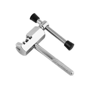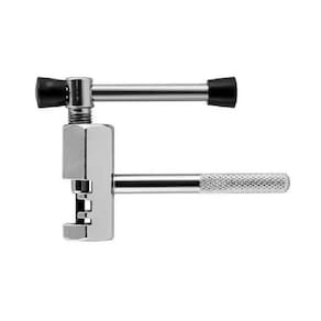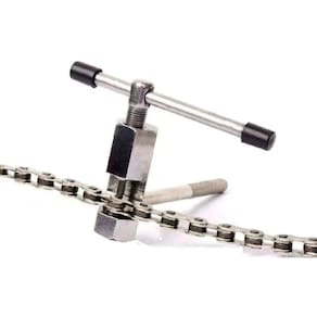 Com o extrator de corrente você pode fazer a manutenção da sua corrente de forma prática e simples. Basta encaixar a corrente no extrator e girar a manivela para que empurre o pino e a corrente seja desmontada.