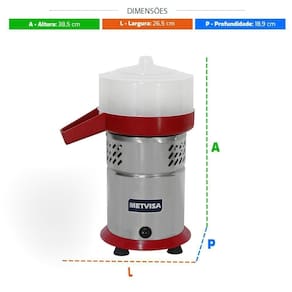 Extrator de Suco Comercial e Domestico Vermelho Corpo Inox 300w Esl 127v - Metvisa