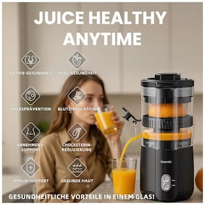 O Extrator de Suco Elétrico Keerain é a escolha perfeita para os amantes de frutas cítricas! Com operação com um toque, você terá seu suco em apenas 5 segundos. Até as crianças podem facilmente preparar seu próprio suco, sem complicações. Este extrator eficientemente extrai cada gota das suas laranjas, com desperdício mínimo, economizando dinheiro. Fácil de limpar, com copo e cones removíveis. Armazenamento conveniente devido ao design compacto. Versátil para diferentes frutas, funciona bem com frutas cítricas e mais duras como maçãs.