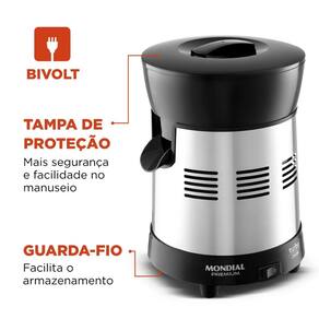 BIVOLT: Pode ser utilizada em ambas as voltagens: 127V e 220V. Liberdade de usar seu extrator de frutas em qualquer lugar!