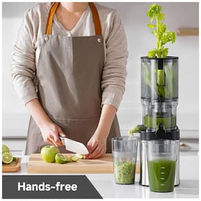Com o Extrator de Sucos AMZCHEF Cold Press, você terá uma experiência única na preparação de sucos frescos e saudáveis. Sua boca de alimentação larga de 13,71 cm permite que você insira frutas e vegetais inteiros, sem a necessidade de pré-corte. Graças ao mecanismo de corte automático poderoso com lâminas duplas de trituração, seus ingredientes são fatiados e sucos rapidamente, poupando tempo e maximizando cada gota de suco. A avançada tecnologia de extração lenta e a baixa rotação de 60 RPM reduzem obstruções e sedimentação, permitindo a separação perfeita do bagaço do suco, proporcionando um suco puro e natural a cada uso. O maior êmbolo do equipamento aplica alta pressão em baixa velocidade, garantindo a extração de até a última gota de suco. Construído com aço inoxidável durável, o juicer elétrico é projetado para durabilidade e facilidade de limpeza. Não se preocupe com superaquecimento, pois as aberturas de ventilação laterais estrategicamente posicionadas ajudam a prevenir esse problema. Fácil de montar e limpar, com design de uma peça e apenas 3 componentes para montar. A limpeza é rápida e simples, basta desmontar o corpo e usar a escova especial incluída. Para melhores resultados, mantenha a tampa aberta ao montar ou remover a boca de alimentação.