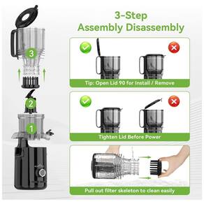 O Extrator de Sucos Hzon e preserva mais nutrientes e sabores, minimizando o calor e a oxidação para manter vitaminas, antioxidantes e enzimas, reforçando a imunidade e o bem-estar, em comparação com os extratores centrífugos. Com mais de 99% de eficiência na extração de suco, os extratores masticadores lentos da Hzon e produzem polpa mais seca e mais porções por lote de frutas e vegetais, reduzindo o desperdício e economizando dinheiro. Ideal para indivíduos atentos à saúde e famílias ocupadas em busca de nutrição conveniente. Fácil de limpar, com peças removíveis e função de reversão antientupimento que facilita a limpeza, mesmo de vegetais de folhas verdes como couve. O extrator de sucos lento de prensa a frio é feito de materiais duráveis e de qualidade alimentar, livres de BPA, duráveis e fáceis de manter. Inclui escova e livro de receitas. Com uma boca de alimentação extra larga de 13,46 cm, permite inserir frutas e legumes inteiros, eliminando a necessidade de cortes prévios para economizar tempo e maximizar o rendimento de suco. Operação ultra silenciosa a 50 RPM, com menos de 60 dB, garante manhãs tranquilas. A frescura dos sucos é prolongada. Leitura obrigatória para o primeiro uso: 1. Trave a boca de alimentação girando para a seta com a tampa aberta em 90 graus, feche com segurança antes de ligar. 2. Remova sementes duras ou grandes, como as de pêssego. 3. Evite usar limão, gelo, nozes. Em caso de problemas, sinta-se à vontade para nos contatar para substituição. Aproveite uma vida saudável de forma simples.