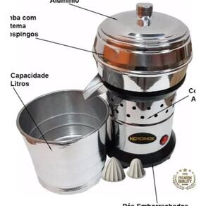 O extrator de sucos CADINOK é super potente e silencioso, extraindo o suco de laranja ou limão com uma rapidez incrível. Sua tampa e caçamba é fabricada em alumínio e seu corpo é produzido em Aço Inox Escovado, aumentando a durabilidade e facilitando a limpeza e higienização do produto. O copo para armazenamento do suco é fabricado em alumínio com capacidade para 3 litros e é o maior disponível no mercado, suas carambolas não deixam qualquer sabor no suco extraído, garantindo a sua qualidade e pureza. Possui o motor mais potente da categoria e não trava no meio do processo.Características:-fabricante CADINOK-modelo grande-uso INDUSTRIAL / RESIDENCIAL-potência Máxima 1/3 HP - 500W Watts-RPM 3545-altura 31cm Largura 18cm-bivolt Chaveado-peso 4,0 Kg-caçamba em alumínio com sistema anti-respingos-tampa em alumínio-copo em alumínio com capacidade máxima de 3 Litro-1 Castanha Grande Laranja 1 Castanha Pequena Limão-corpo do motor em Inox-pés anti-deslizantes Marca: Kadinok