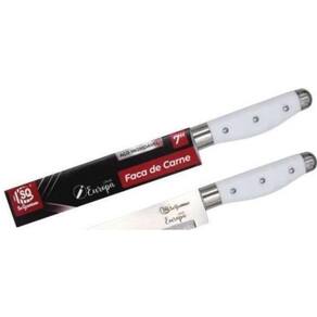 Contém: 1 faca de 7 polegadas Descrição: Cabo: plástico branco formato anatômico ; Lamina: inox; Largura da lamina: 2mm; Tamanho da lamina: 178mm; Tamanho do cabo: 112mm; Tamanho total: 29cm; Largura do cabo: 16mm;