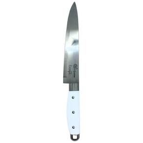 Lâmina estampada em aço inox; Tratamento térmico total; Indicada para cortar e fatiar carnes, legumes e verduras; Cabo injetado em polipropileno fixados por rebites de alumínio; Ponta do cabo reforçada com capsula de aço para auxiliar na quebra de cascas; Reforço de aço na parte de baixo do cabo garantindo maior fixação e resistência. Marca: Não Informado Ean: 7899441531753