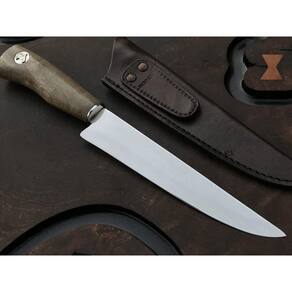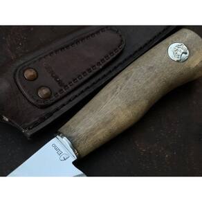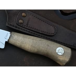 Faca disponível em tamanho único de 7 polegadas, produzidas em aço inox com a mais clássica modelagem de lâmina, tendo a espessura de 2 mm. Podendo haver variações na tonalidade do cabo. As facas acompanham bainha em couro.