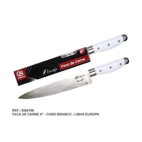Faca 8 chef inox carne com cabo branco premium churrasco top