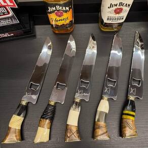Faca Artesanal 10' Churrasco Aço Inox 420c com Abridor de Garrafas Cabo Misto Madeira Osso Resina.