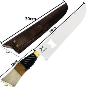 Dimensões da faca com bainha: 38cm (C) x 2,5cm (L) x 7cm (A);