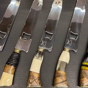 Materiais: Aço Inox 420c, variação de componentes como, madeira, osso, chifre e resina;