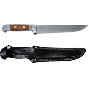 Faca + Bainha Couro Bianchi Cozinha Churrasco Churrasqueiro O cuidado com as facas é essencial, elas devem estar sempre afiadas para facilitar o corte do churrasco, facilitando na hora de servir seus convidados. Essa faca acompanha uma bainha em couro envernizado. Produzida em aço inoxidável, que confere durabilidade e resistência à lâmina e cabo em madeira que facilitam a higiene e dão firmeza durante o manuseio. Indispensável para a hora de servir um delicioso churrasco, essa faca é perfeita para os churrasqueiros mais requintados até os assadores de fim de semana e seu uso no dia a dia da cozinha. Especificações: Faca 6 - 27cm Marca: Bianchi Bainha em couro envernizado (a cor pode variar conforme couro).