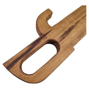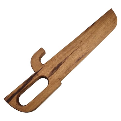 Desenvolvida com lâmina de 33 cm e cabo de 10 cm, essa faca de madeira apresenta proporções fiéis ao modelo tradicional, proporcionando ao praticante uma experiência de treino equilibrada. A madeira, com seu acabamento liso e textura natural, oferece um toque agradável e é ideal para treinos prolongados. Pesando 569g, a faca mantém uma estrutura robusta e resistente, simulando o peso de uma faca real e permitindo o aprimoramento das técnicas de corte e defesa com precisão e controle.