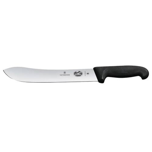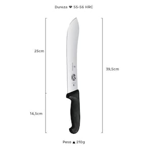 Faca Butcher Fibrox 25 Cm 5.7403.25 Lâmina Butcher Tradicional - ideal para uso no preparo e durante o churrasco. Aço inoxidável de alta qualidade X50 CrMo - vida útil excepcionalmente longa. As Facas se caracterizam pela facilidade em afiação e ótima retenção do fio. Dureza aproximada entre 55 e 56 HRC - permite uma afiação mais fácil. Lâmina curvada com ponta aguda. Cabo Fibrox: alta resistência à impactos com superfície emborrachada (antideslizante). Empunhadura confortável e firme. Certificada e testada pela NSF. Fabricada na Suíça. Embalagem: blister e proteção para envio.