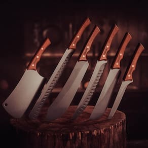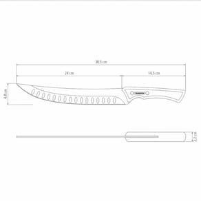 A faca para carne da linha Churrasco Black da Tramontina é produzida com lâmina de aço inox escurecido resistente, robusta, com sulcos que minimizam o atrito com a carne e uma excelente afiação, sendo ideal para garantir a qualidade em cortes maiores. O cabo em madeira com design anatômico e rebites proporciona um manuseio muito mais firme e confortável, além de um estilo diferenciado.