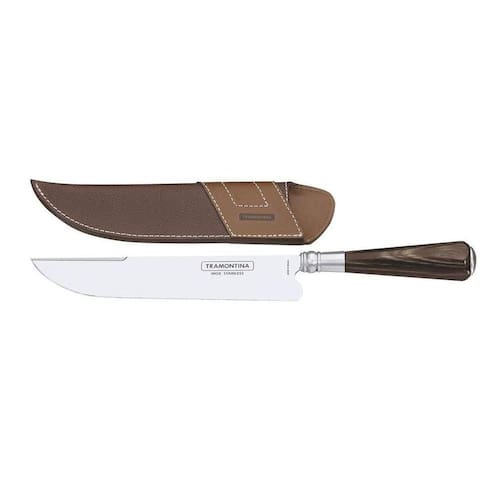 Será impossível não reconhecer toda a beleza da Faca Tramontina para Carne 7 polegadas com Lâmina em Aço Inox e Cabo Castanho Polywood com Bainha de Couro. Uma faca que irá lhe garantir os melhores cortes sem precisar fazer esforço. A linha Polywood traz facas de extrema qualidade, produzidas com lâmina em aço inox de fio liso altamente durável, cabo de madeira tratada Polywood, sendo resistente à impactos e a altas temperaturas. Além disso, acompanha uma belíssima bainha de couro. Os detalhes do cabo a tornam ainda mais surpreendente. Uma faca que irá impor respeito por onde quer que passe. diferenciais A lâmina de aço inox tem maior durabilidade do fio devido ao tratamento térmico. O cabo de madeira tratada Polywood é resistente à impactos e altas temperaturas garantindo maior resistência e durabilidade. A bainha em couro que oferece uma proteção ao fio da faca, permitindo o transporte e armazenagem com maior segurança. Pode ir à máquina de lavar louças facilitando seu dia a dia. orientações gerais Tenha cuidado ao manusear produto cortante e perfurante e mantenha-o fora do alcance das crianças. Para maior durabilidade do produto recomenda-se secar bem antes de guardar, mesmo após lavagem em máquina. Para descarte dos produtos e embalagens siga as orientações de reciclagem vigentes.