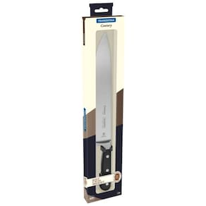 Seja você chef ou cozinheiro por hobby, garantimos que você entende a importância de utensílio de alta qualidade na sua cozinha, não é mesmo? Por isso, a linha Century desenvolveu uma faca ideal para o uso intenso: a Faca Chef Tramontina Century com Lâmina em Aço Inox e Cabo de Policarbonato e Fibra de Vidro 10 polegadas. Uma peça única, que recebe materiais de alta qualidade na sua produção, passando por um processo de fabricação rigoroso que a torna altamente durável, oferecendo ainda mais precisão no corte. A Faca Tramontina Chef é produzida com lâmina em aço inox, com cabo em policarbonato com fibra de vidro. Além disso, recebe tratamento térmico composto por têmpera (aquecimento da lâmina), sub-zero (resfriamento de -50° C a -196° C) e revenimento (aumento da flexibilidade do aço especial), proporcionando vida longa da lâmina. Para tornar o manuseio ainda mais seguro e confortável, o cabo é anatômico e ergonômico. Faça diferente na sua cozinha, escolha Tramontina.